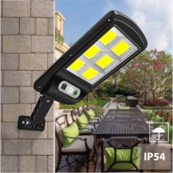W zestawie znajduje się pilot do wygodnego włączania/wyłączania i przełączania między 3 trybami: 1) po zmroku po wykryciu ruchu świeci 100% przez 20 s, 2) stałe 20% jasności, a przy ruchu 100% przez 20 s, 3) stałe 20% jasności. To sprytne połączenie oszczędza energię i wydłuża czas pracy baterii.