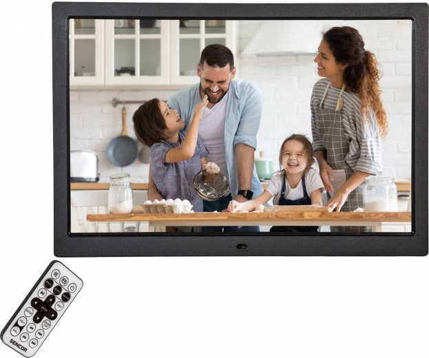 Stylowa i nowoczesna cyfrowa ramka na zdjęcia o przekątnej 15 cali, idealna do wyświetlania ulubionych fotografii w jakości HD.