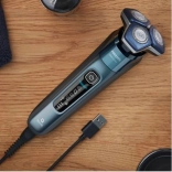 Praktyczny wyświetlacz LED pokazuje stan baterii i potrzebę czyszczenia. Nowoczesna konstrukcja z możliwością golenia na mokro i na sucho gwarantuje uniwersalne użycie pod prysznicem i przy umywalce. W zestawie znajduje się podstawka/rozwiązanie czyszczące oraz etui podróżne dla łatwej konserwacji i bezpiecznego przechowywania.