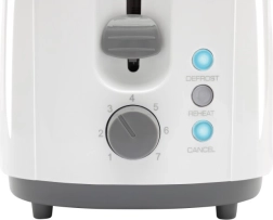 Dzięki obrotowemu pokrętłu do ustawiania poziomu opiekania oraz trzem przyciskom funkcji obsługa tego tosteru jest bardzo prosta.