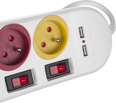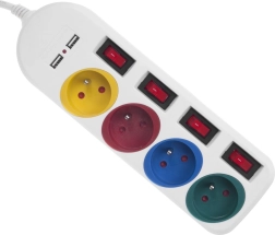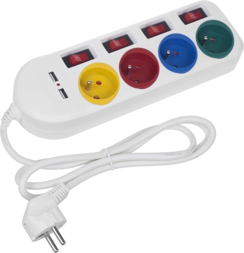 Ta listwa zasilająca oferuje wygodne rozwiązanie dla nowoczesnych domów, które wymagają podłączenia wielu urządzeń. Dzięki czterem kolorowo oznaczonym gniazdom oraz indywidualnym wyłącznikom dla każdego gniazda można łatwo organizować i kontrolować dopływ energii.