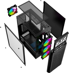 - Estetyka bez kompromisów: szklany boczny panel i adresowalne wentylatory RGB dla unikalnego wyglądu zestawu gamingowego.