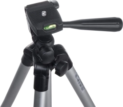 Statyw jest wyposażony w fotograficzny gwint 1/4" do szybkiego mocowania aparatu lub kamery. W zestawie znajduje się także sprężynowy uchwyt na smartfon dla telefonów o szerokości około 5,5–8,5 cm. Głowica obrotowa z dźwignią i poziomicą pomoże precyzyjnie wyrównać horyzont i uzyskać profesjonalnie wyglądające ujęcia.
