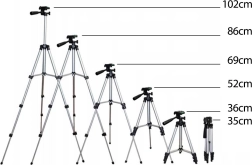 Kompaktowy i stabilny statyw o wysokości do 105 cm i udźwigu do 2 kg dla smartfonów, aparatów, kamer sportowych oraz lamp pierścieniowych. Dzięki standardowemu gwintowi 1/4" jest kompatybilny z większością urządzeń, a w zestawie znajduje się uchwyt na telefon i pokrowiec transportowy.
