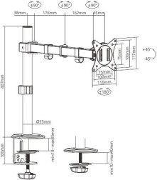 Uchwyt monitora na biurko umożliwia dostosowanie pozycji monitora do Twoich potrzeb. Jest wykonany z trwałego metalu i obsługuje monitory o wielkości od 17 do 32 cali oraz wadze do 9 kg.