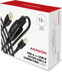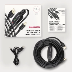Aktywny kabel USB AXAGON ADR-215B o długości 15 m pozwala na podłączenie urządzeń takich jak drukarki, skanery lub plotery do komputera na większą odległość. Dzięki zintegrowanemu wzmacniaczowi sygnału zapewniona jest stabilna komunikacja nawet na większe odległości. Kabel można przedłużyć za pomocą przedłużacza. Cechy: