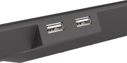 Kombinacja 1 dużego i 4 mniejszych wentylatorów zapewnia wysoki przepływ powietrza oraz równomierne chłodzenie całej dolnej części laptopa. Dwustopniowa regulacja obrotów dostosowuje wydajność do aktualnego obciążenia.