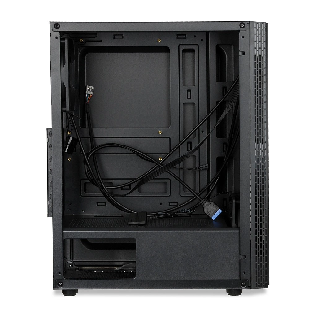 Obudowę zaprojektowano z myślą o czystym montażu – zarządzanie okablowaniem ułatwia prowadzenie przewodów i poprawia airflow. Trzy porty USB na panelu przednim zapewniają szybkie podłączanie peryferiów i nośników danych.
