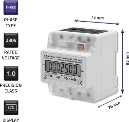 - Zgodność z normami IEC 62053-21 i DIN EN50022