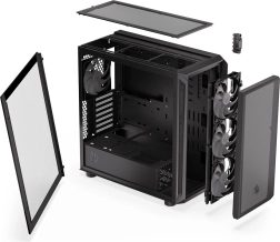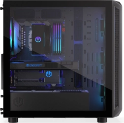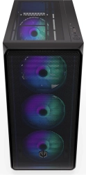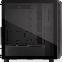 Obudowa oferuje nowoczesny design z przezroczystym szklanym panelem bocznym i oświetleniem ARGB, które podkreśla walory estetyczne.