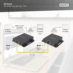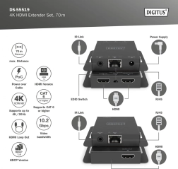 Umożliwia przesył sygnałów HDMI na odległość do 70 m z obsługą rozdzielczości do 4K.