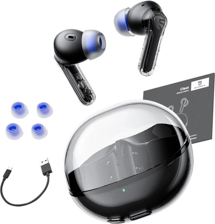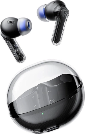 Stylowe bezprzewodowe słuchawki Soundpeats Clear wyróżniają się transparentnym designem, przetwornikami 12 mm zapewniającymi bogate i detaliczne brzmienie, technologią ENC dla czystych rozmów oraz do 40 godzin pracy z etui. Oferują Bluetooth 5.3 dla szybkiego i stabilnego połączenia, tryb gry z niską latencją 90 ms oraz ergonomiczne wykonanie dla całodziennego komfortu.