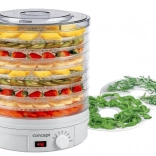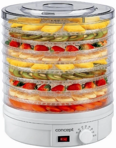 Suszarka do żywności Concept pozwala wydłużyć trwałość Twoich produktów bez utraty ważnych witamin i minerałów. Teraz możesz z łatwością suszyć owoce, warzywa, zioła, a nawet mięso.