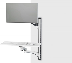 Montaż na ścianie oszczędza miejsce na biurku, a zintegrowane prowadzenie kabli utrzymuje stanowisko pracy przejrzyste i bezpieczne.