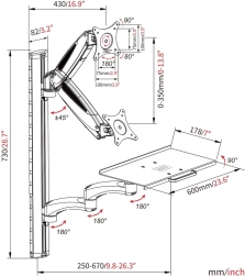 Nawieszone ramię DIGITUS łączy uchwyt na monitor z oddzielną półką na klawiaturę i mysz, dzięki czemu z jednej ściany tworzysz pełnoprawne, oszczędzające przestrzeń stanowisko pracy. Ramię ze zarządzaniem kablami zapewnia porządek, a dzięki płynnej regulacji wysokości obu ramion łatwo ustawisz idealną ergonomię.
