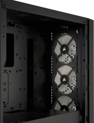 - Dedykowane chłodzenie karty graficznej: Obudowa jest gotowa na najnowsze karty graficzne i posiada dwa dodatkowe uchwyty do montażu wentylatorów 120 mm na osłonie zasilacza, pozwalające skierować strumień powietrza bezpośrednio na GPU.