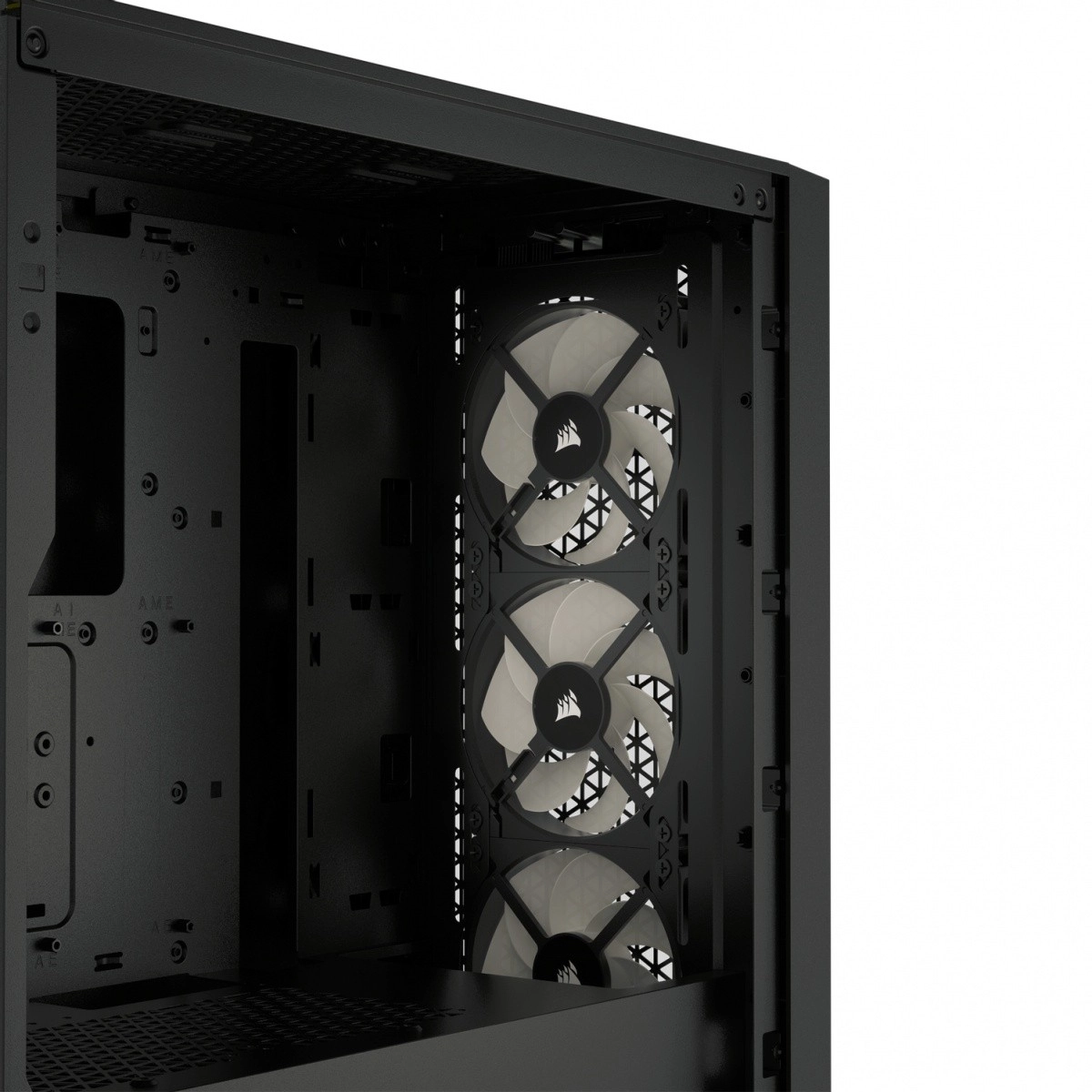 - Kompletny mid-tower: Obudowa ATX mid-tower o wyrazistym, przewiewnym wzornictwie z trzema fabrycznie zainstalowanymi wentylatorami CORSAIR AR120 RGB zapewniającymi doskonałe chłodzenie i atrakcyjne efekty świetlne.