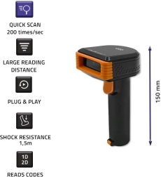 Przyspiesz pracę przy kasie, w magazynie i podczas wysyłki. Czytnik Qoltec niezawodnie odczytuje kody 1D i 2D z wysoką prędkością do 200 skanów/s, radzi sobie z odczytem pod różnymi kątami, a dzięki trybowi automatycznemu uruchamia skanowanie po zbliżeniu kodu. Wytrzymała konstrukcja z materiału ABS wytrzymuje upadki do 1,5 m, więc jest gotowa na wymagające warunki pracy.