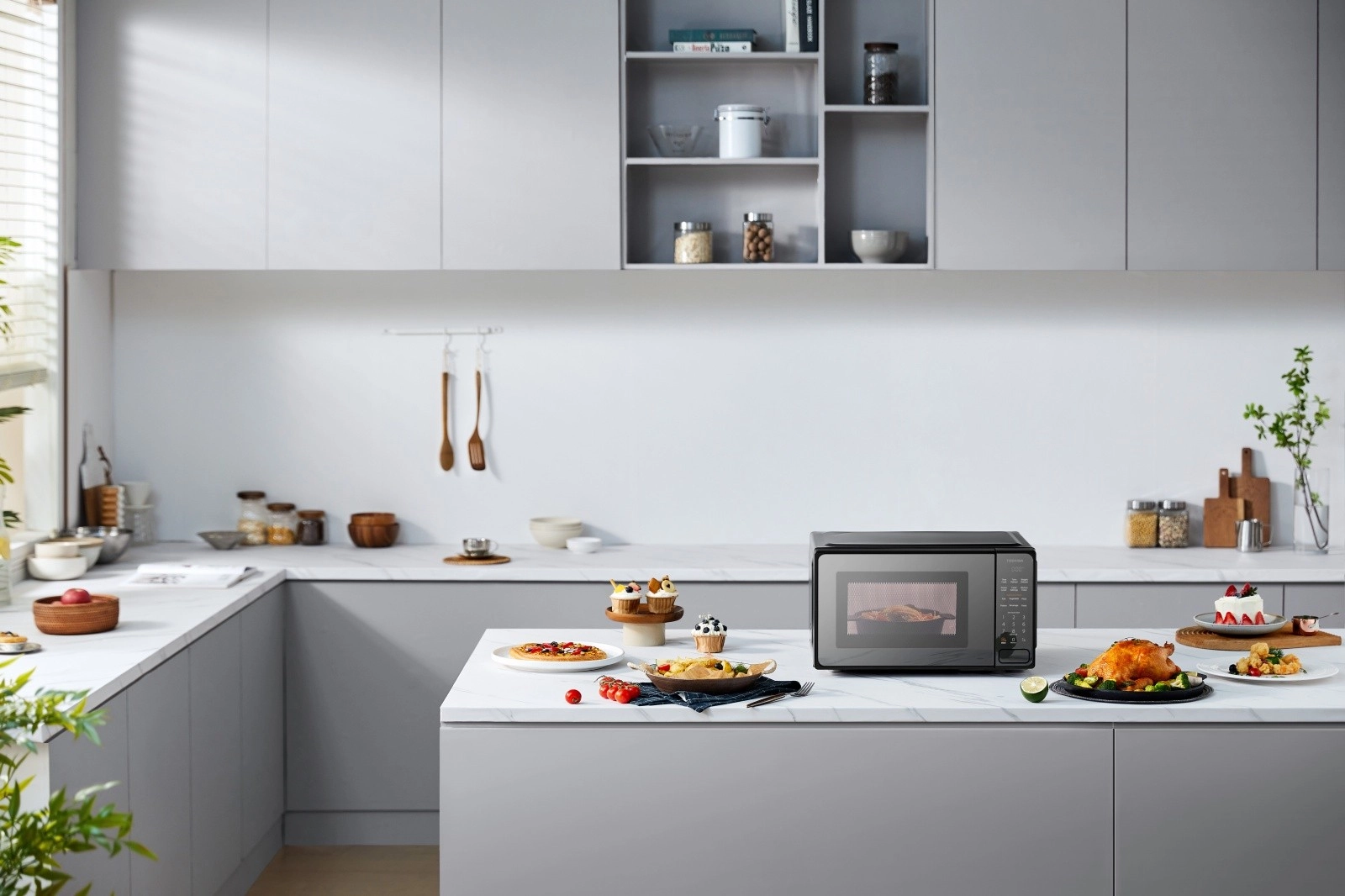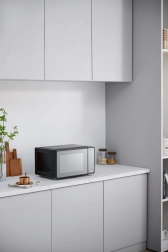 Kuchenka mikrofalowa jest kompaktowa i pasuje do różnych kuchni.