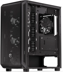 Obudowa zapewnia wydajny przepływ powietrza dzięki perforowanym panelom, które pełnią funkcję filtrów przeciwkurzowych, bez konieczności dodawania dodatkowej ochrony. Wentylatory Stratus 140 PWM ARGB są znane z cichej i niezawodnej pracy, a dzięki sterowaniu PWM można łatwo dopasować prędkość i podświetlenie wentylatorów do potrzeb.
