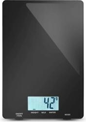 Ta smukła i stylowa cyfrowa waga Lafe została zaprojektowana do precyzyjnego odmierzania składników z szybkim odczytem na dużym, podświetlanym wyświetlaczu. Dotykowe przyciski zapewniają wygodną obsługę, funkcja tara umożliwia ważenie składników kolejno w jednej misce, a specjalne tryby dla wody i mleka ułatwiają przygotowywanie przepisów.