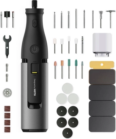 Bogate wyposażenie w zestawie 36 szt. obejmuje różne bity, tarczki i nasadki do precyzyjnego wykończenia oraz intensywniejszego usuwania materiału. Bez trudu wykonasz drobne naprawy, obróbkę krawędzi, wygładzanie powierzchni czy wiercenie małych otworów.