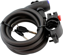 Hartowana stalowa linka z wytrzymałym oplotem nylonowym zwiększa bezpieczeństwo i jednocześnie chroni lakier ramy. Średnica linki 4,5 mm, a całkowita grubość do 1,2 cm zapewniają solidną ochronę przed przecięciem.