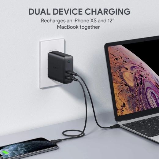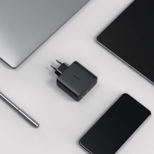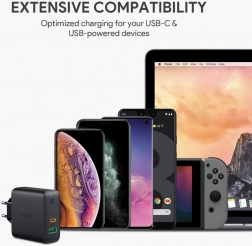 Ładuj szybko i efektywnie swoje urządzenia z ładowarką AUKEY PA-D3. Dwa porty – USB-C Power Delivery i USB-A – obsłużą wszystko od telefonów i słuchawek po bardziej wymagające urządzenia, w tym laptopy i monitory zasilane przez USB-C. Technologia Dynamic Detect inteligentnie przydziela moc: przy jednym podłączonym urządzeniu do 60 W, przy dwóch urządzeniach optymalizuje podział (np. do 45 W dla portu głównego), zapewniając szybkie i bezpieczne ładowanie.