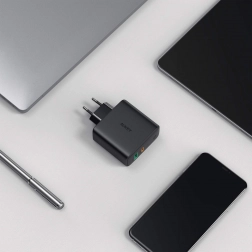 Kompaktowa obudowa ze składaną wtyczką sieciową jest idealna w podróży i w biurze. Uniwersalna kompatybilność z protokołami szybkiego ładowania zapewnia wygodę – jedna ładowarka do wielu urządzeń, mniej kabli i zajętych gniazdek.