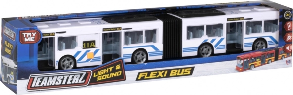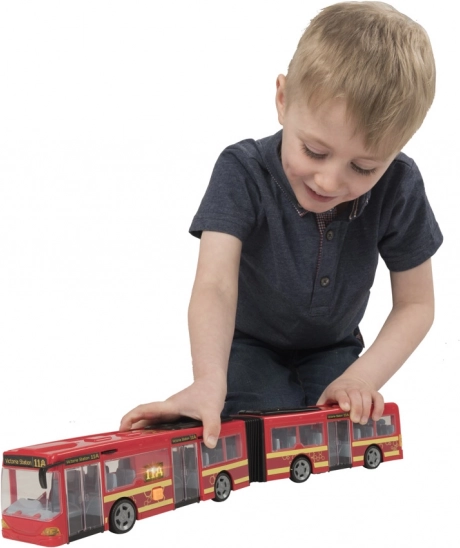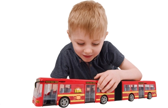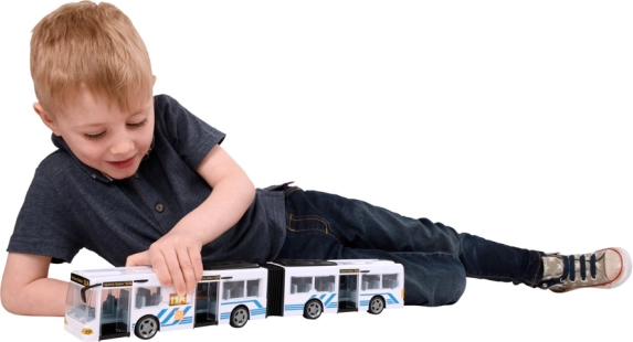 Ten autobus ma długość 46 cm i jest idealnym dodatkiem do dziecięcej kolekcji pojazdów. W zestawie znajdują się 2 baterie LR44 / AG13 potrzebne do działania funkcji autobusu.