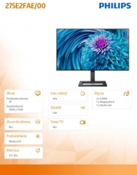 Odkryj zachwycającą jakość obrazu z 27‑calowym monitorem Philips wyposażonym w technologię IPS dla szerszych kątów widzenia i dokładniejszych kolorów.