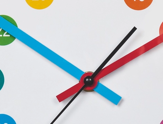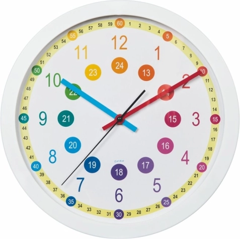 Wspieraj naturalną ciekawość dzieci dzięki kolorowemu zegarowi, który uczy odczytywania czasu krok po kroku. Duże cyfry arabskie, kolorowe oznaczenia i czytelny podział na 12/24 godziny oraz minuty pomagają szybko zrozumieć zasadę określania czasu.