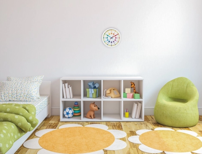 Płynący sekundnik bez tykania nie przeszkadza podczas snu ani koncentracji w pokoju dziecięcym.