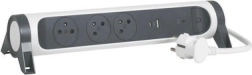 Ten przedłużacz z ochroną przeciwprzepięciową jest wyposażony w trzy gniazda w standardzie francuskim oraz porty USB typu A i C. Kabel umożliwia obrót o 12° w prawo lub w lewo, co zwiększa komfort i elastyczność użytkowania. Jego dwukolorowy design w kombinacji białej, czarnej i antracytowej wygląda nowocześnie i stylowo.