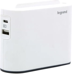 Praktyczny i wyjątkowo płaski rozdzielacz z parą portów USB do łatwego podłączania i ładowania urządzeń, dostępny w białym i ciemnoszarym wzornictwie.