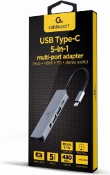 Kompaktowy adapter USB‑C 5w1 rozszerzy Twój laptop lub telefon o kluczowe porty do pracy i rozrywki. Oferuje szybkie transfery danych USB 3.1, wyjście HDMI dla obrazu w wysokiej rozdzielczości, złącze audio dla słuchawek lub głośników oraz zasilanie przez Power Delivery (PD). Wystarczy podłączyć dzięki Plug & Play. Wytrzymała metalowa konstrukcja zapewnia długą żywotność.