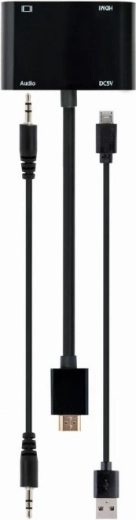 Ten kompaktowy adapter umożliwia podłączenie urządzeń z wyjściem HDMI do wyświetlaczy z interfejsem HDMI lub VGA. Dzięki oddzielnemu wyjściu audio 3,5 mm łatwo podłączysz głośniki lub słuchawki, co szczególnie docenisz przy użyciu VGA, które nie przesyła dźwięku. Port zasilania zapewnia niezawodność nawet przy bardziej wymagających źródłach i dłuższych trasach kablowych.