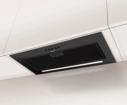Czytelne przyciski do ustawiania mocy i światła w połączeniu z eleganckim czarnym wykończeniem pasują do każdej nowoczesnej kuchni.