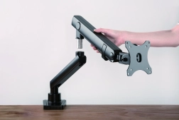 - Ergonomiczny design: Uchwyt wspiera monitory do 8 kg, mechanizm sprężynowy ułatwia indywidualne ustawienie pozycji ekranu.