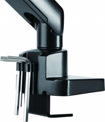 Uchwyt można przymocować do biurka za pomocą podstawy zaciskowej, co oszczędza miejsce. Alternatywnie można go podłączyć bezpośrednio do przelotki stołu.