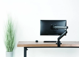 Uchwyt na monitor IB-MS313-T oferuje ergonomiczną elastyczność z możliwością montażu na biurku, umożliwiając optymalne zorganizowanie przestrzeni roboczej i wspieranie monitorów o rozmiarze do 32 cali.