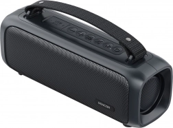 Zintegrowane radio FM poszerza możliwości słuchania o Twoje ulubione stacje. Konstrukcja z klasą odporności IPX4 wytrzymuje zachlapania wodą, więc nadaje się nad basen lub na piknik. Przyciski sterujące są rozmieszczone przejrzyście, co ułatwia szybką zmianę głośności, przełączanie utworów i trybów.