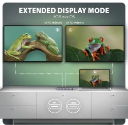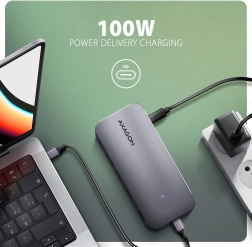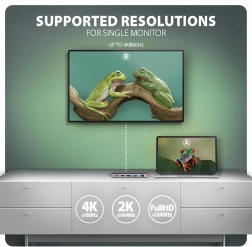 Stwórz kompaktowe stanowisko pracy jednym kablem. Hub oferuje 3× USB-A (2× 5 Gb/s, 1× 10 Gb/s) oraz 1× USB-C 10 Gb/s dla szybkich peryferiów i dysków zewnętrznych. Obraz podłączysz przez HDMI i DisplayPort do 4K/60 Hz – pojedynczo lub jednocześnie, z obsługą HDR i wysokich częstotliwości dla gier (2K/144 Hz, Full HD/240 Hz). Osobny port USB-C PD 100 W z zasilaniem przelotowym oszczędza port w Twoim laptopie.