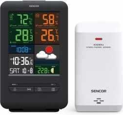 Przedstawiamy wam stację meteorologiczną Sencor, która łączy nowoczesny design z praktycznymi funkcjami. Dzięki kolorowemu wyświetlaczowi o wielkości 5,4" łatwo odczytacie wszystkie potrzebne informacje o pogodzie, w tym ikoniczne wyświetlanie prognozy: słonecznie, częściowo słonecznie, pochmurno, deszcz i śnieg.