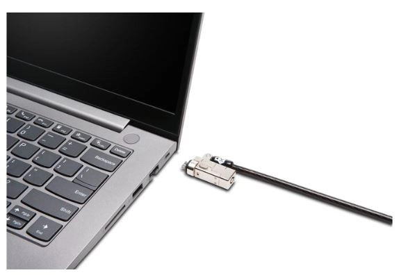 Smukła głowica zamka Nano nie blokuje portów wejścia/wyjścia i nie unosi urządzenia ponad powierzchnię biurka.