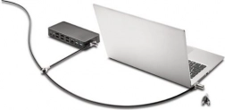 - Podwójne zamki pozwalają zabezpieczyć dwa urządzenia jednym rozwiązaniem. Idealne do ochrony wielu urządzeń, na przykład laptopa, monitora lub stacji dokującej. Uproszczone zarządzanie kablami i kluczami zmniejsza plątaninę kabli.