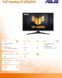 ASUS TUF Gaming VG328QA1A to 32‑calowy monitor do gier zaprojektowany dla graczy wymagających stabilnej wydajności, minimalnych opóźnień oraz szerokich możliwości ustawień. Dzięki wytrzymałej konstrukcji TUF i nowoczesnemu designowi doskonale wpasuje się w każde stanowisko gamingowe.
