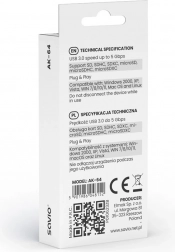 Ten czytnik kart obsługuje szeroką gamę kart pamięci, w tym SD, SDHC, SDXC, microSD, microSDHC oraz microSDXC. Jego elegancki czarny design i niewielkie wymiary sprawiają, że jest idealnym towarzyszem do codziennego użytku i w podróży.
