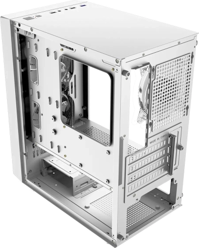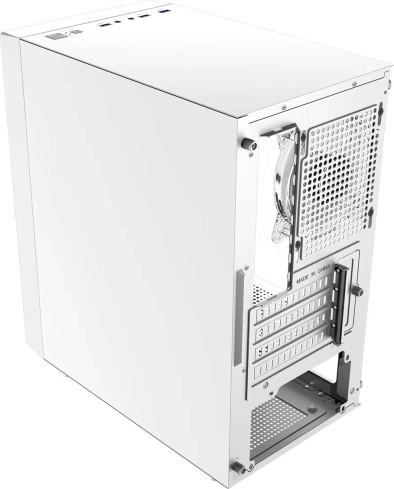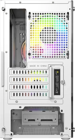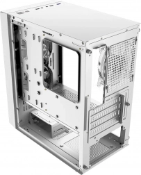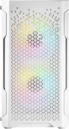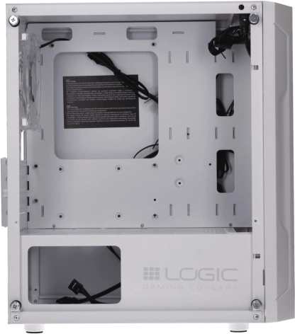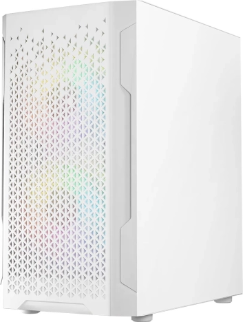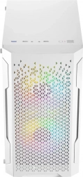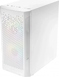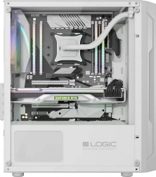 LOGIC Aramis ARGB Mini w eleganckiej bieli łączy nowoczesny wygląd i przemyślany airflow. Przedni panel z drobną siatką mesh przepuszcza dużo powietrza, a dwa fabryczne 120 mm ARGB wentylatory utrzymują podzespoły w chłodzie i dodają stylu. Boczny panel z hartowanego szkła eksponuje kartę graficzną i podświetlane elementy, a iluminację łatwo zmienisz przyciskiem RESET na górnym panelu.