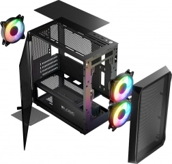 Wentylowany przedni i górny panel znacząco ułatwia cyrkulację powietrza. Dwa wentylatory 120 mm z przodu i jeden wentylator 120 mm z tyłu obudowy skutecznie chłodzą rozgrzane podzespoły. Wszystko dla Twojej wygody i bezpieczeństwa Twojego komputera.